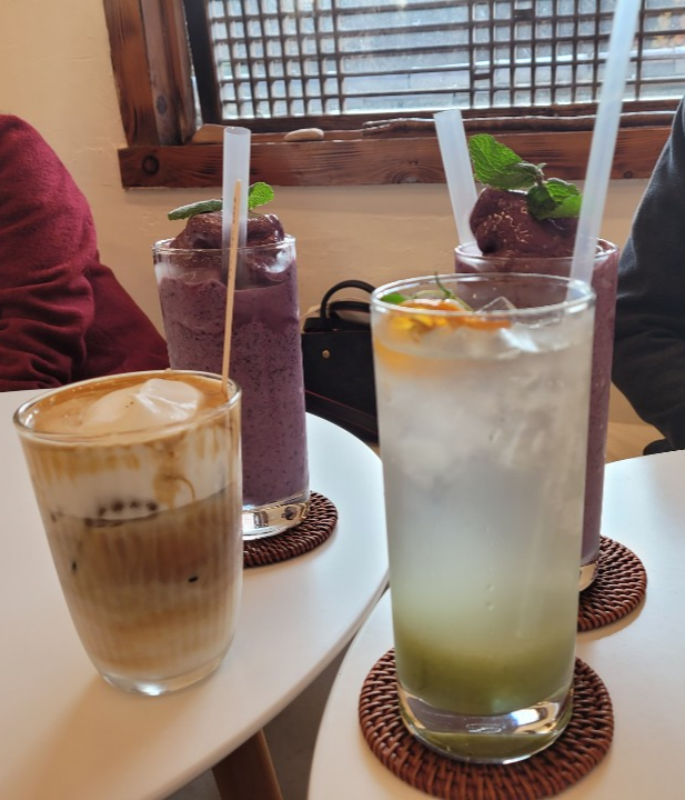 청포도 에이드는 청포도를 잘게 썰어 넣었으나, 탄산수가 아니라 사이다가 베이스였고 심각하게 달지는 않았다.
