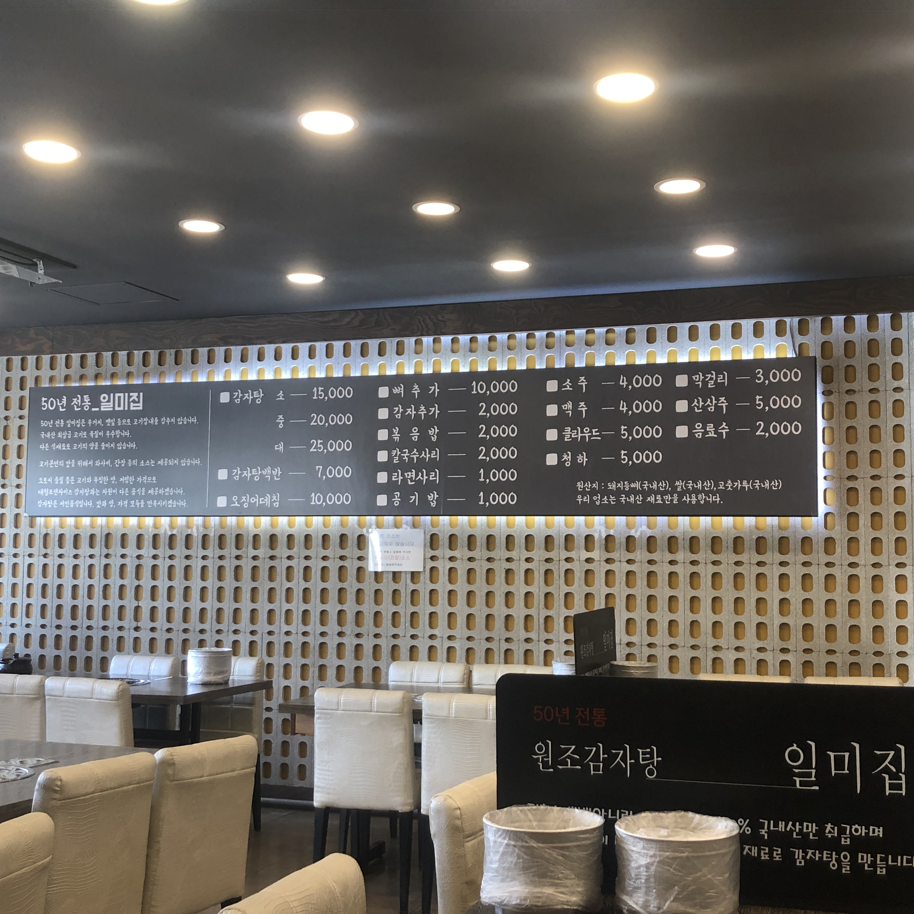 [서울 영등포] 부드러운 식감이 좋았던, 일미 감자탕_메뉴판 와! 우선 놀랐던 것은 감자탕 소자가 15,000이라는 것이다.