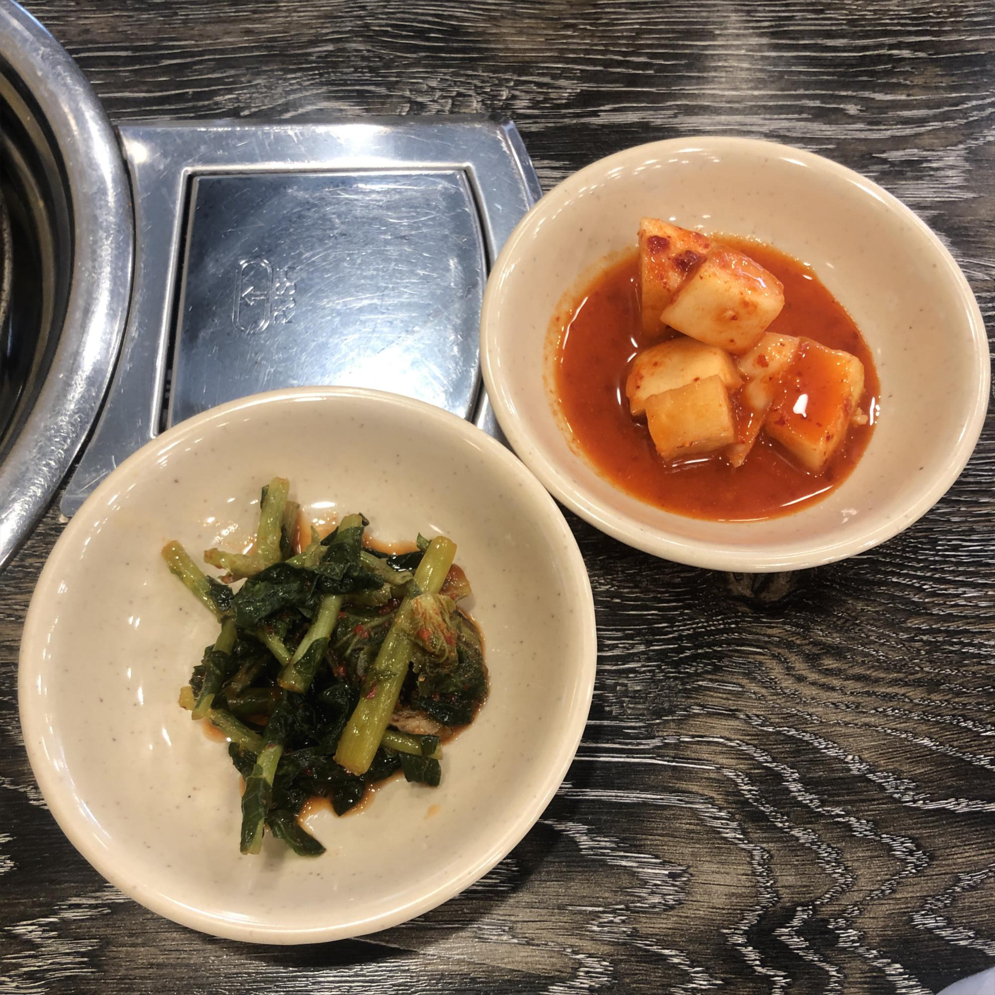 두 가지 밑반찬 모두 셀프로 덜어먹을 수 있도록 조그마한 뚝배기에 담겨있고, 집게로 덜어먹으면 된다.