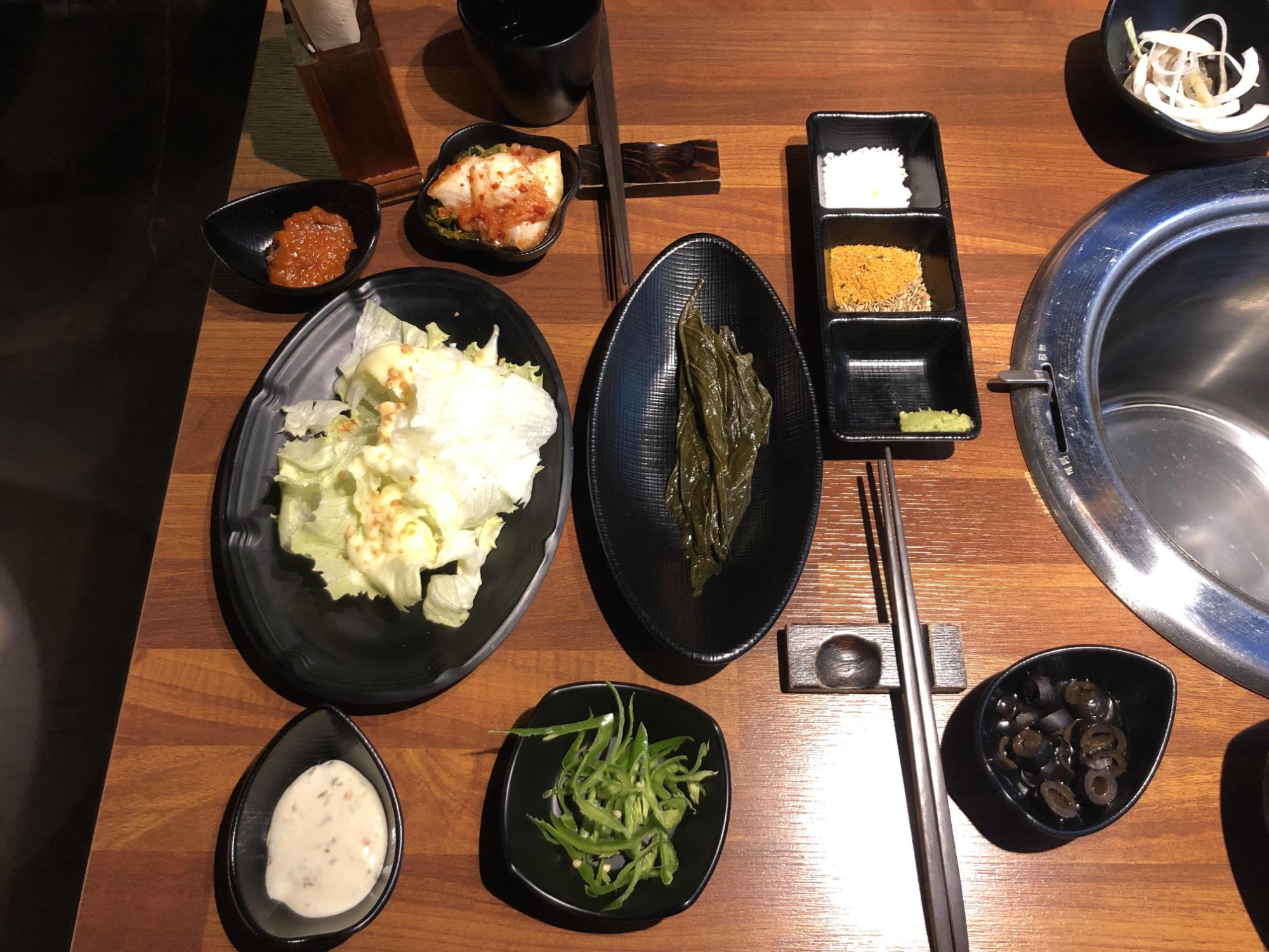 [울산 무거동] 싱싱한양고기, 대칸 양고기_밑반찬 기본 밑반찬으로는 각종 장류(와사비, 소금, 쌈장 등등), 샐러드, 올리브, 양파절임 등등