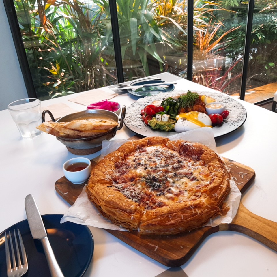 [부산 송정] 비주얼, 맛 모두 훌륭했던 브런치카페, 키치니토 키친 재방문기 베이컨파이는, 도우 부분이 페스츄리로 되어 있어서 식감으로 너무나도 훌륭한 맛을 제공하였다.