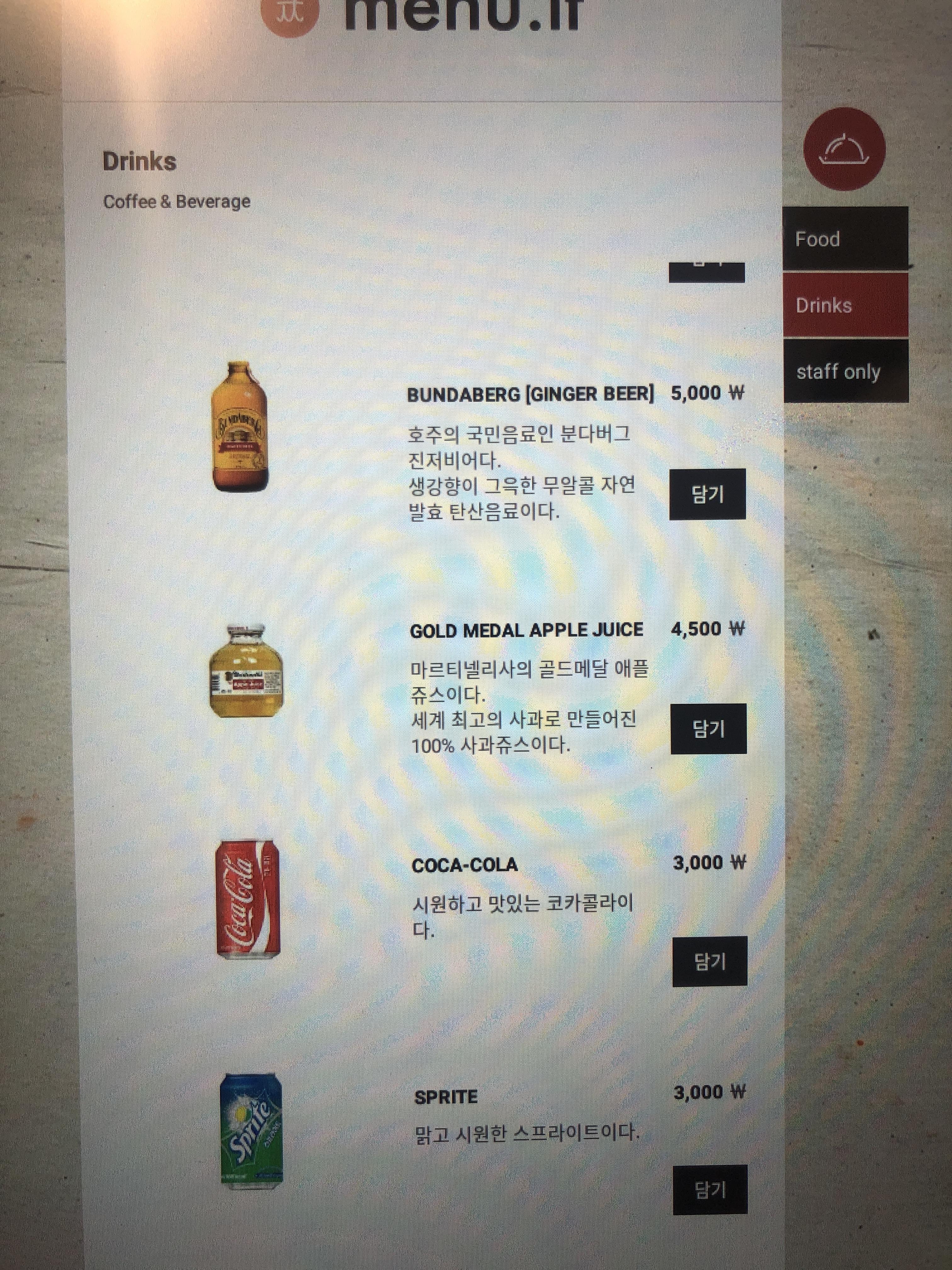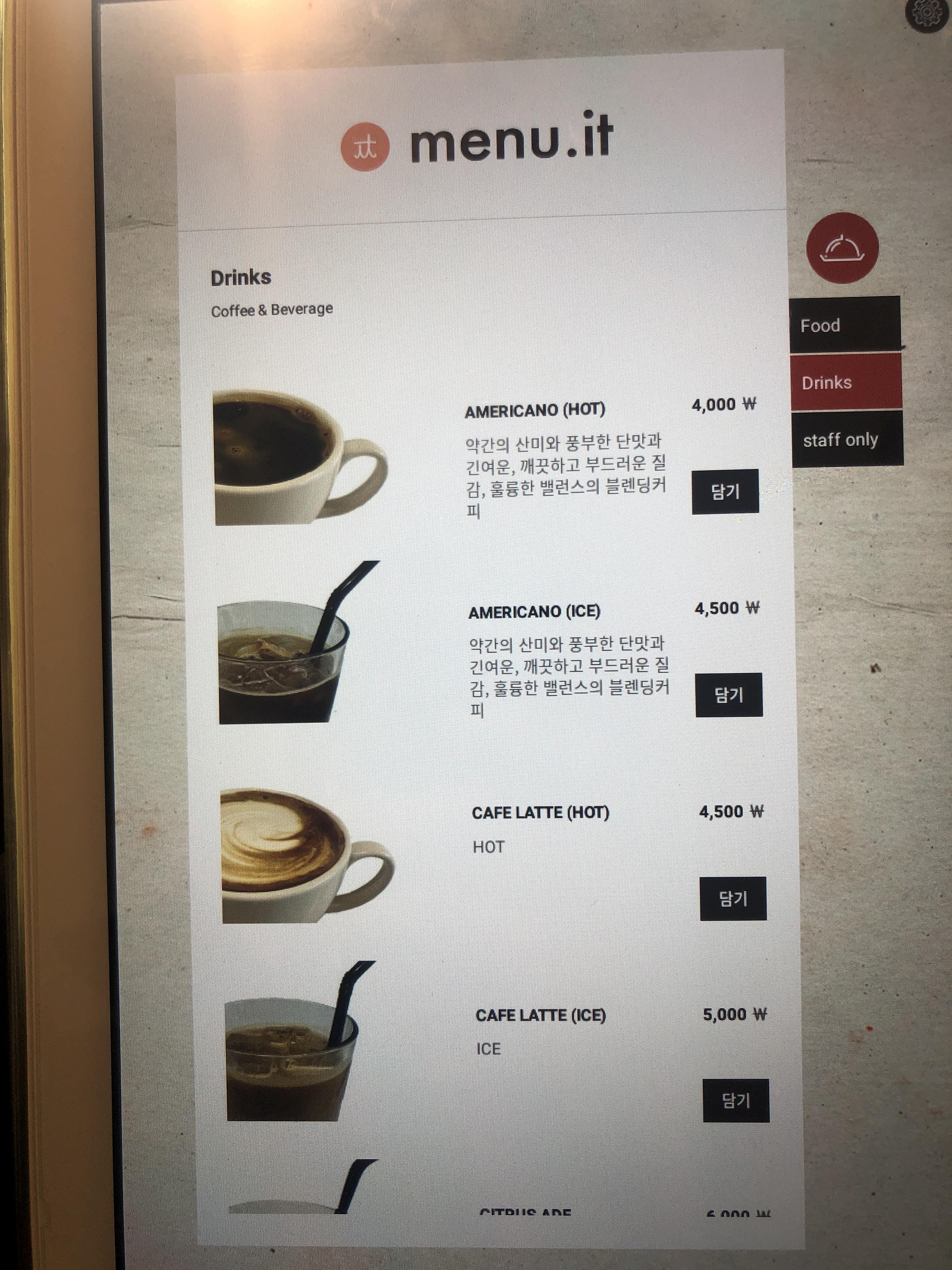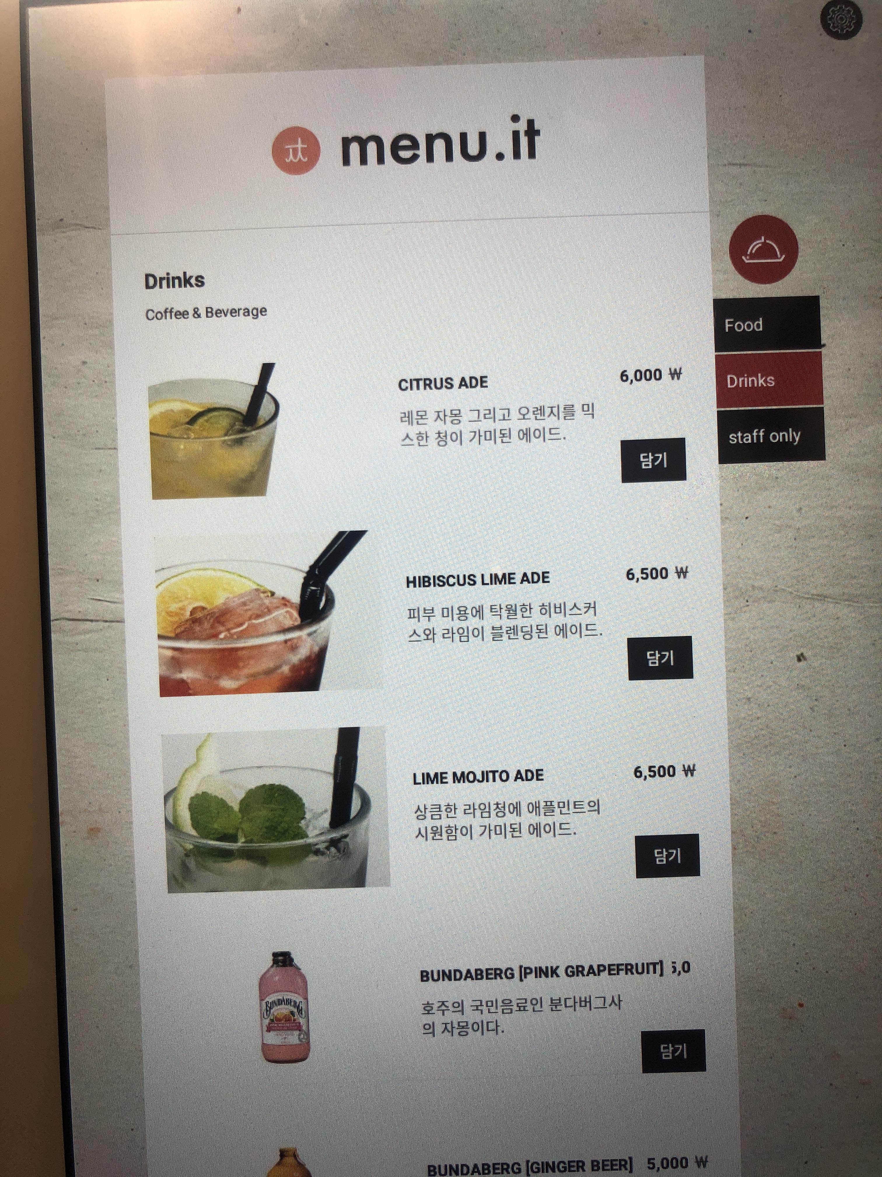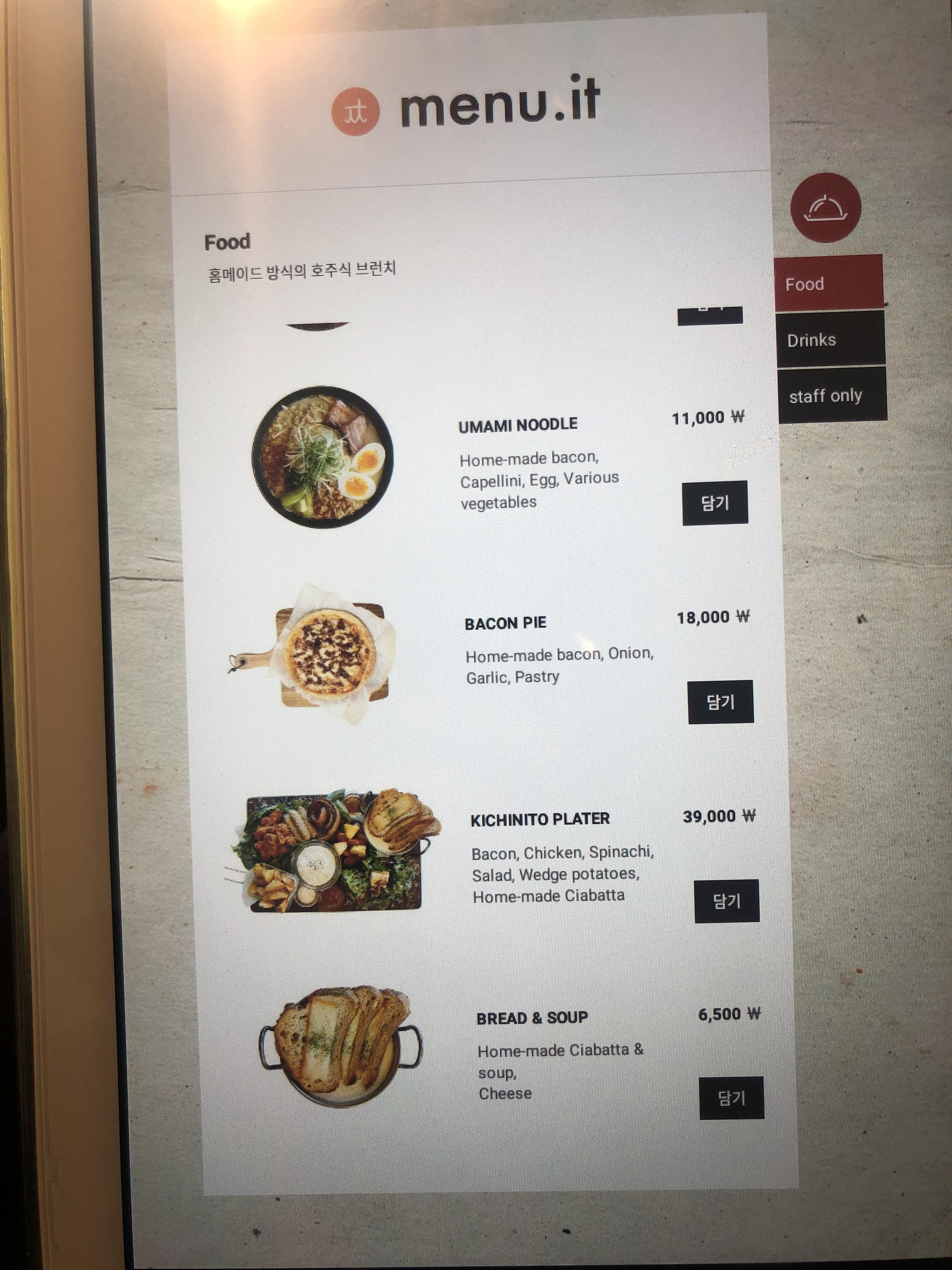 코로나 임에도 불구하고 손님이 끊이지 않는지 키오스크 시스템이 도입되어 너무 좋았다.