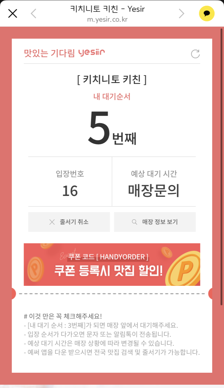 [부산 송정] 키치니토 키친 재재방문기 와 샤넬매장에만 있는 줄 알았던, 대기를 위한 키오스크가 새로 생겼다. 그리고 대기공간도 추가로 생겼고!