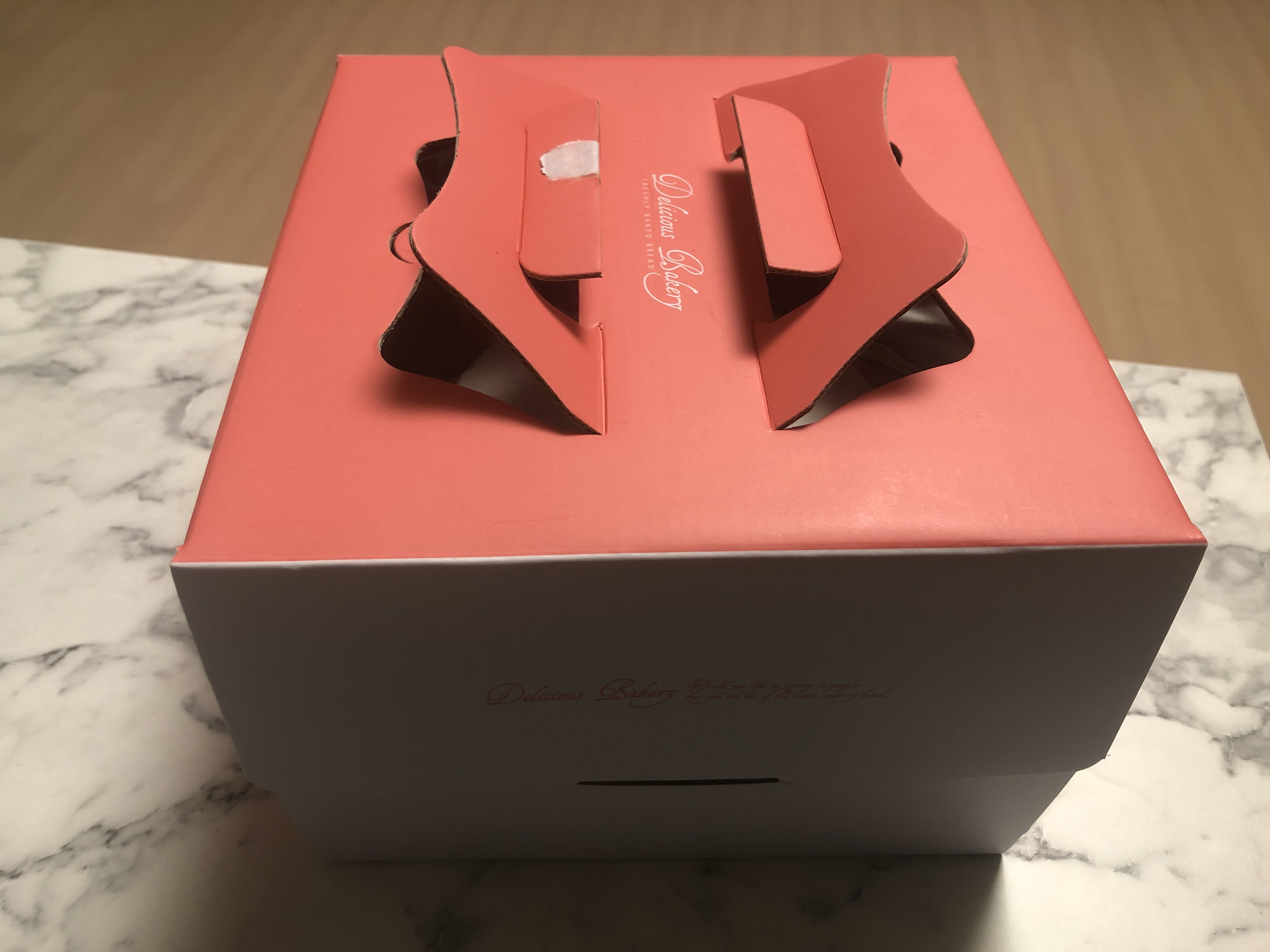 [울산 남구] 많이 달지 않아 맛있는 수제 레터링케익 전문점, J Bake 조금 기울여서 형광등 불빛을 더 받게 하여 찍은 사진!