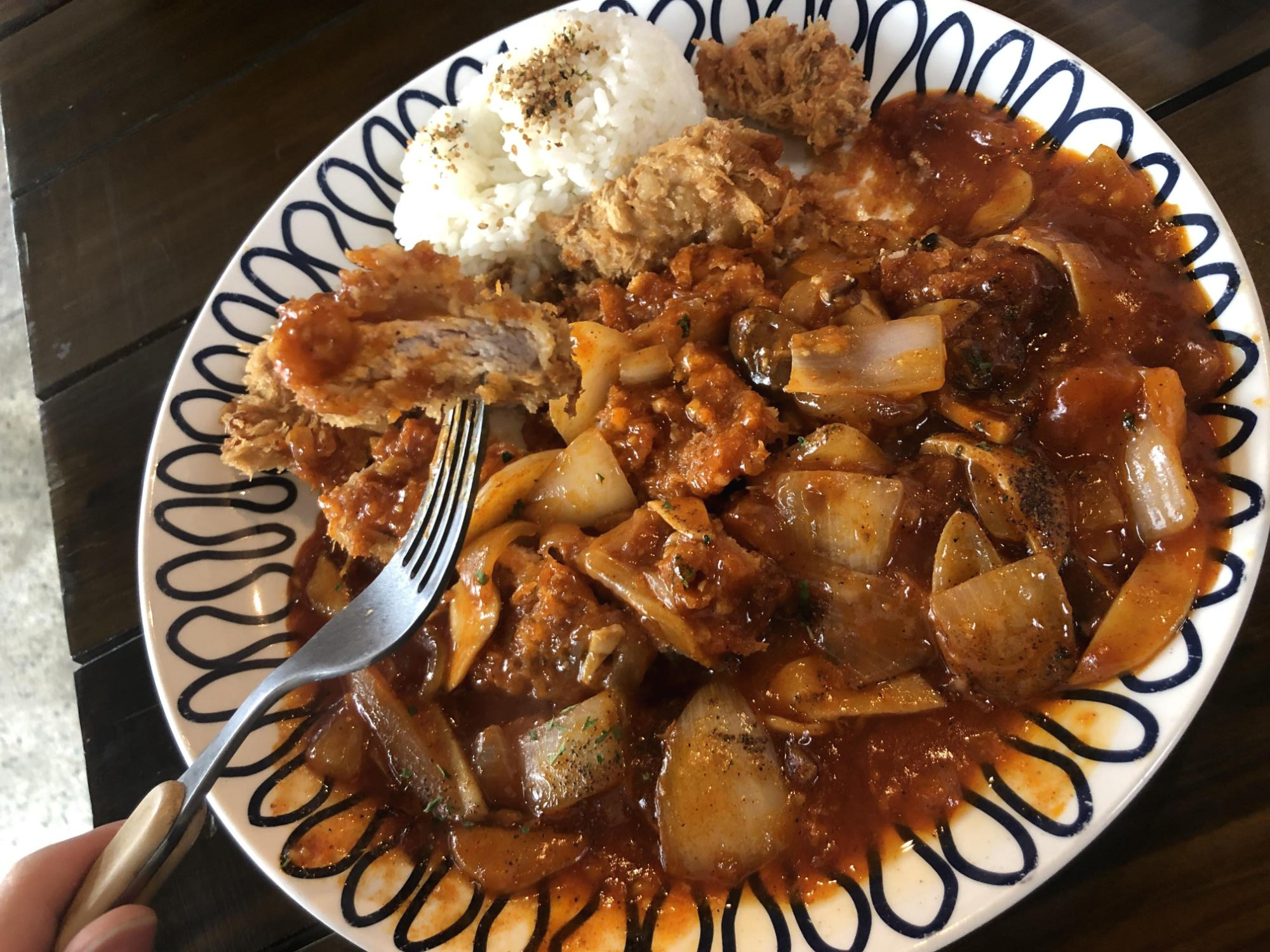 [영천] 매콤하고 소스 두툼한 돈까스, 와이식당 사진으로는 잘 보이지 않지만, 고기도 두툼했고 튀김도 바싹하이 몹시 만족스러웠다.