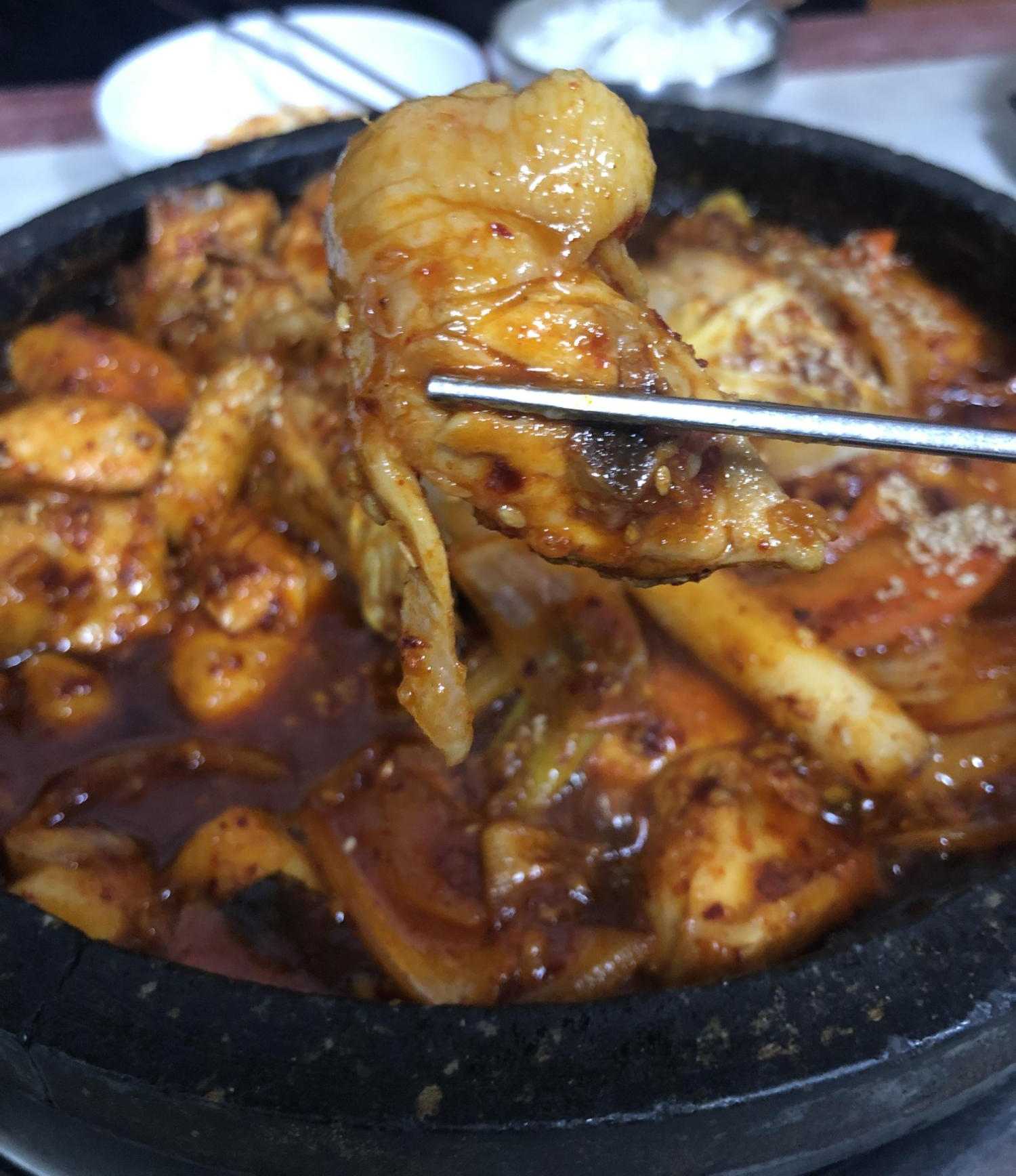 [경북 안동] 닭도리탕과 돌솥밥이 참 맛있는, 동악골금재가든 내가 제일좋아하는 닭부위! 정확히 어느 부윈지는 모르겠지만, 지방이 많아서 부드럽게 씹히는 게 너무 좋다.