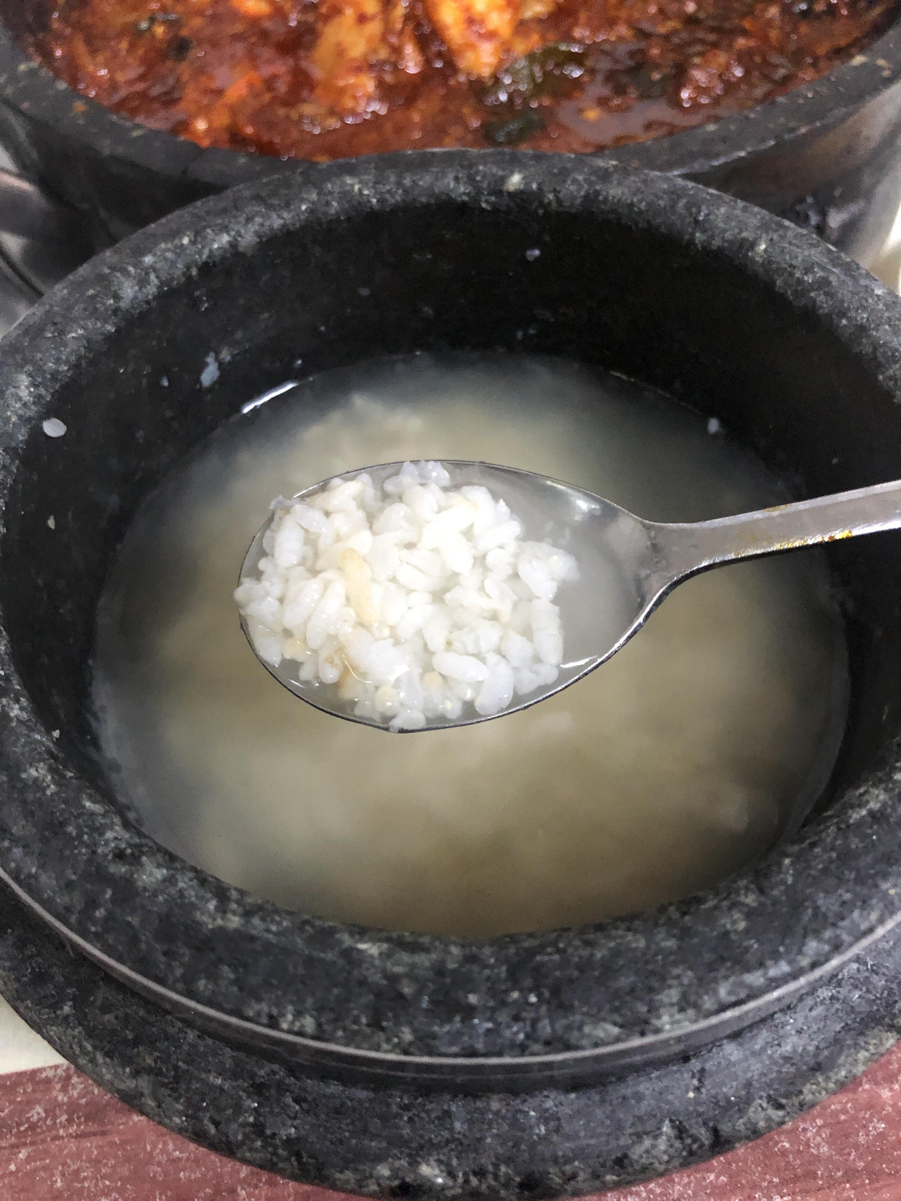 [경북 안동] 닭도리탕과 돌솥밥이 참 맛있는, 동악골금재가든 밥을 덜은다음에 돌솥밥에는 생수를 넣으면 된다. ㅎㅎ 그럼 숭늉완성!