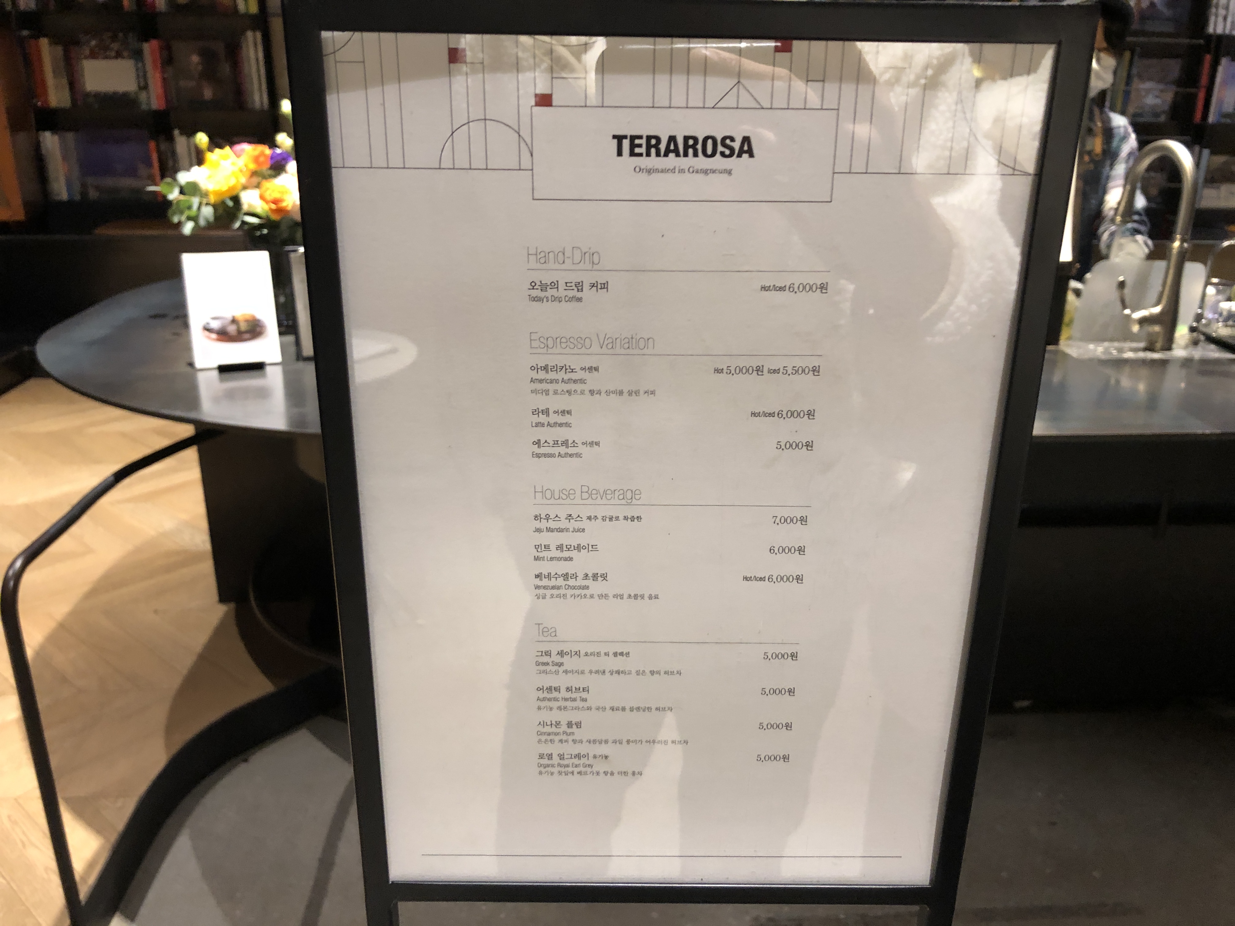 카운터에 생화가 놓여져 있어서 화려하기도 했지만, 공간과 너무 잘 어울리는 느낌이 들었다.