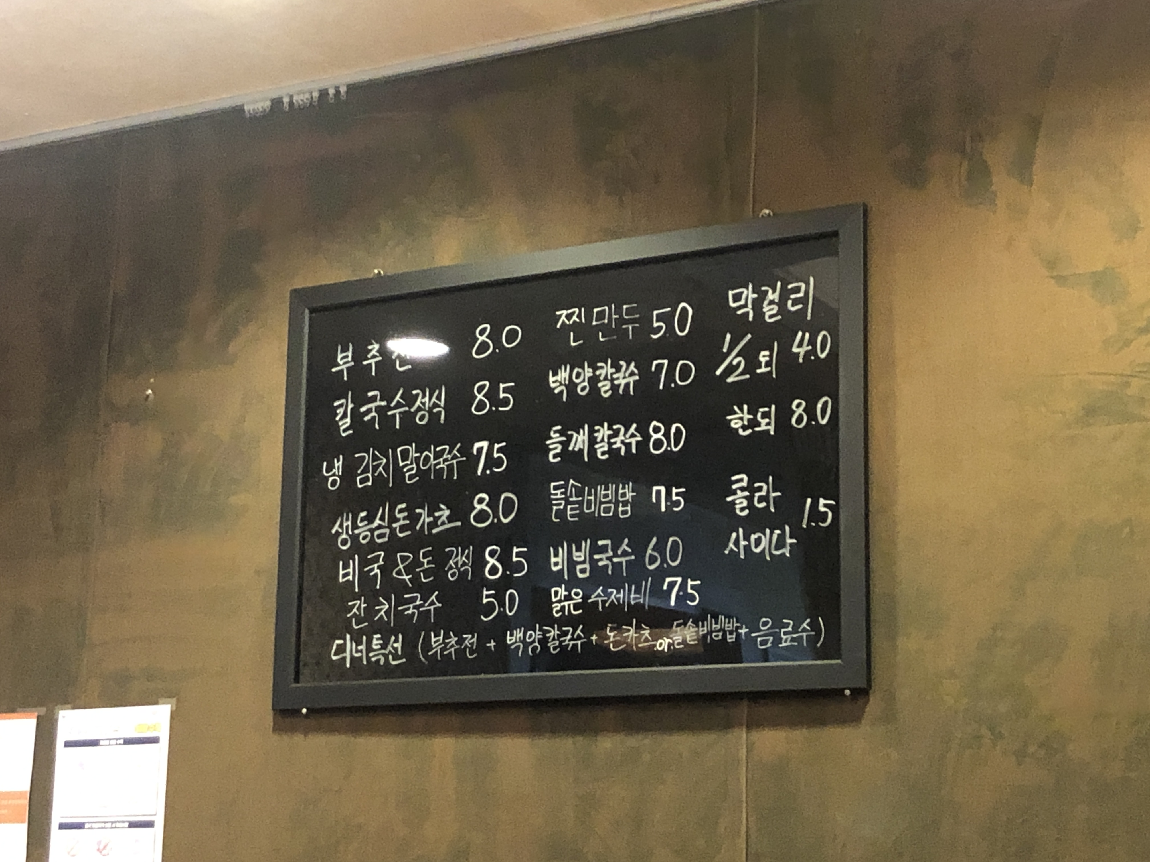 [울산 성안동] 돈칼(돈까스 칼국수)!신기한 조합 백양칼국수 메뉴판! 참고하길 바란다. 대부분 칼국수정식이나 비국&돈 정식을 먹고있었다.