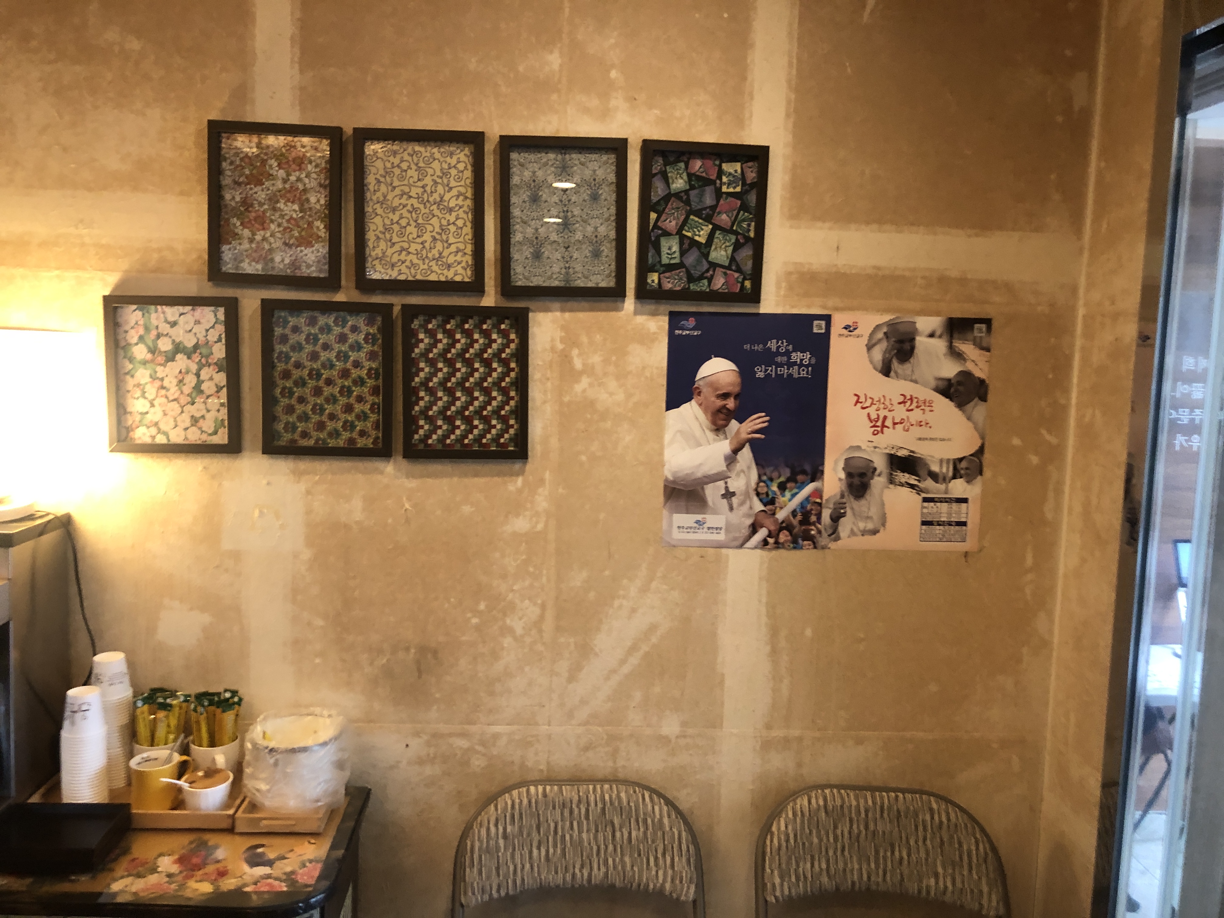 [울산 성안동] 돈칼(돈까스 칼국수)!신기한 조합 백양칼국수 원래 식당으로 사용되던 건물이 아닌지, 벽지가 어마어마했다.